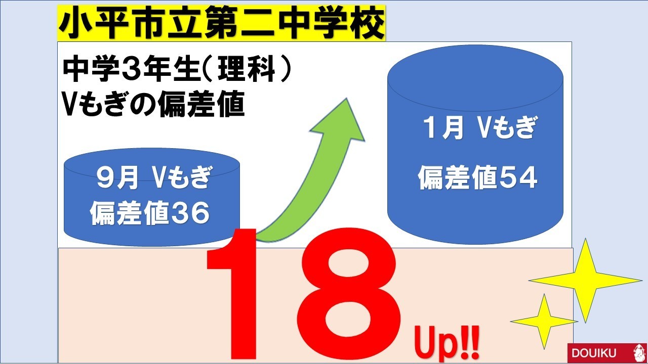 ■1/20(月)【中3】Vもぎの理科の偏差値「36→54」!!導育塾【新小平駅前教室数学・英語の専門性が高く、一人ひとりに向き合う進学塾、導育塾 新小平駅前教室、1/12(日)に実施されたVもぎの結果がでました!、すばらしい成果です!!、小平二中3年生、理科の偏差値が「18」も上がりました。日々の努力の成果です!!、本当にすばらしい!!
