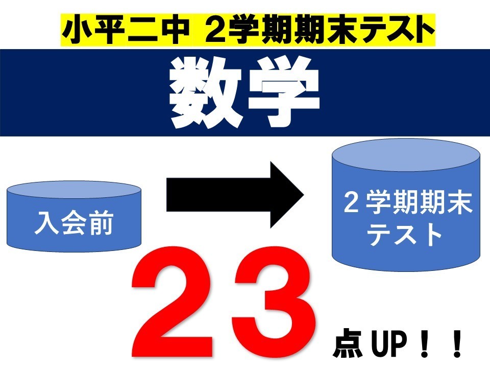 ■11/26(水) 小平二中の期末テスト結果「数学23点」UP!!導育塾【新小平駅前】数学・英語の専門性が高く、一人ひとりに向き合りに向き合う進学塾、導育塾 新小平駅前教室、よく頑張りました!!、すばらしい!!