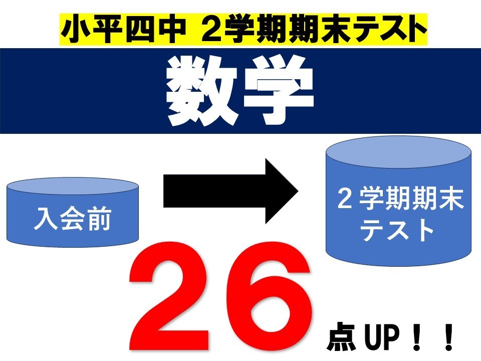 ■11/19(水) 小平四中の期末テスト結果「数学26点」UP!!導育塾【新小平駅前】数学・英語の専門性が高く、一人ひとりに向き合りに向き合う進学塾、導育塾 新小平駅前教室、やりました!!、苦手な数学でしたが、圧倒的な成績向上を実現!!、すばらしい!!!!